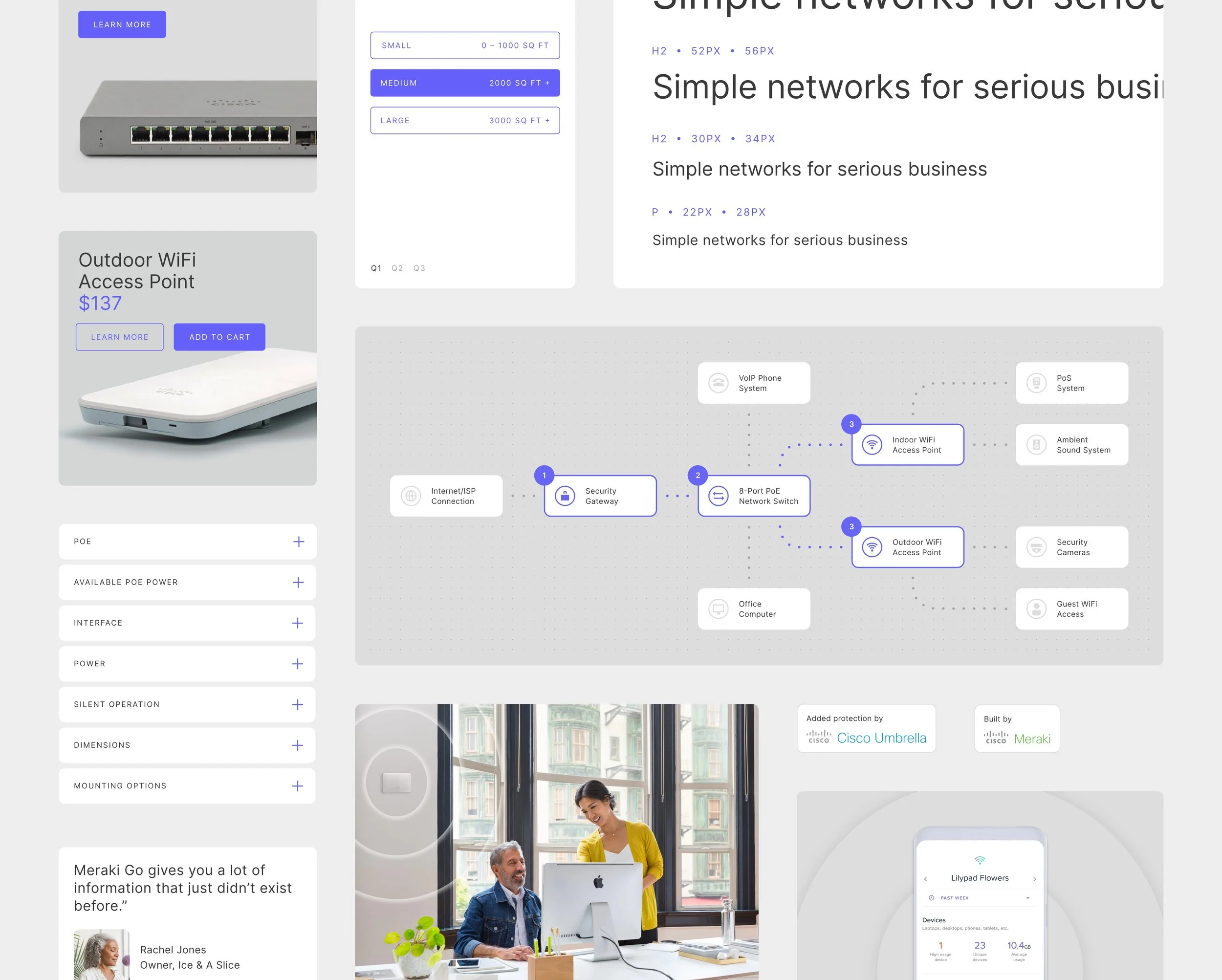 Meraki Go is Cisco Meraki's super simple, complete WiFi network aimed at SMBs. It allows owners to quickly set up and manage a secure network for their business without the need for an IT department.